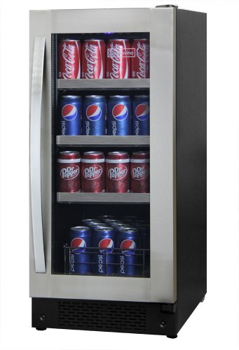 The Allavino BC150-SRNC Built-in Beverage Center allows you to store up to 102 cans of your favorite beverages. It includes three gliding shelves that extend all the way out to easily access your entire assortment of drinks and a removable beverage basket that sits on the bottom of the interior. The temperature can be adjusted all the way down to a brisk 32 degrees for frosty, refreshing beverages. It has a stainless steel framed, dual pane glass door to provide maximum insulation while still displaying the contents of the cabinet. The front-venting design and 15" width allows the unit to be built-in to cabinetry for the flush look that will be sure to complete your kitchen or bar. The digital temperature display allows you to easily determine the interior temperature of the cabinet and the push button controls make adjusting the storage temperature a breeze. Simply press the up or down arrows to adjust the temperature one degree in either direction. The control pad automatically locks after a few seconds to prevent tampering with the controls. Each of the shelves extend effortlessly on rollers, allowing you to access all of your cans quickly and easily. The chrome shelves include attractive stainless steel fronts to match the door frame. An internal fan circulates air inside the unit, ensuring even cooling throughout the cabinet.