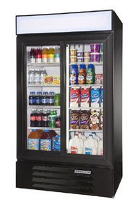 LumaVue Refrigerated Merchandiser, reach-in, two-section, (2) sliding glass doors, 38 cu. ft. capacity, mechanical temperature controls, (5) adjustable wire shelves each section, interior fluorescent lighting, hold open feature, white exterior, 1/3 hp, UL, cUL, UL-EPH, ENERGY STAR, MADE IN USA